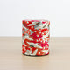 Manufactured out of tin-plated steel and beautifully wrapped by hand in traditional Japanese Washi paper. The soft, cloth-like texture is wrapped around the canister with exquisite patterns of traditional Japanese flowers and flying cranes.